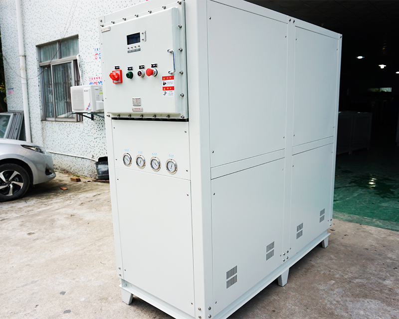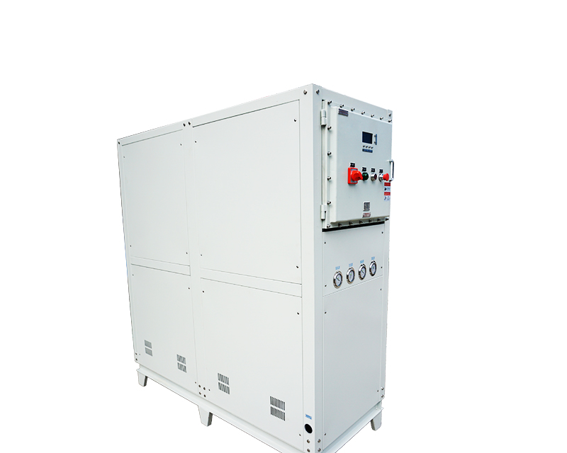 1.壓縮機及控制箱采用防爆電控箱。壓縮機、冷凝器、蒸發器和防爆控制箱的外殼表層均采用有機復合涂膜層。具有防爆功能、延長使用壽命、降低維護成本的優點,可廣泛應用于石油、化工、煉油、冶金等環境較為惡劣、要求防爆的場所。